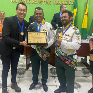 Primeiramente, o coordenador do Clube dos Desbravadores Mensageiros do Reino receberá o diploma de honra ao mérito das mãos da Secretaria Municipal de Educação. Parabéns pela dedicação exemplar!